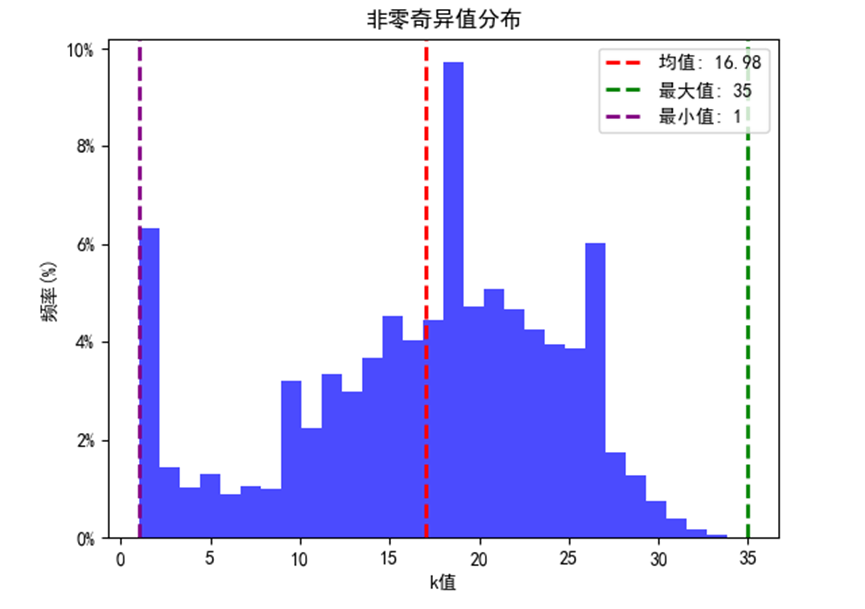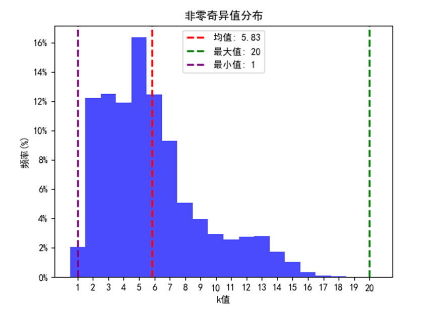 ICCAD-2019非零奇异值数量分布(1200*1200版图规格)